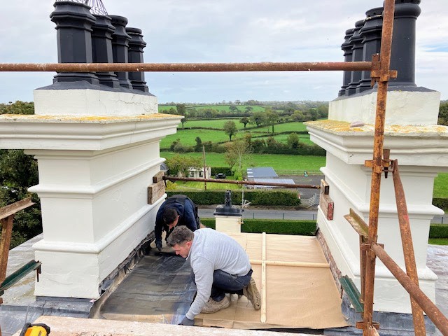 In January 2025 St Joseph’s Parochial House, which dates to the early 1890’s, was damaged by Storm Eowyn. The lead lifted from the roof of the old historic building and repairs were required. Scaffolding was erected in September 2025 and a company engaged to fix the roof. This involved replacing the damaged lead and repointing and painting the chimney, which has now been completed. The view of the church from the roof was spectacular!